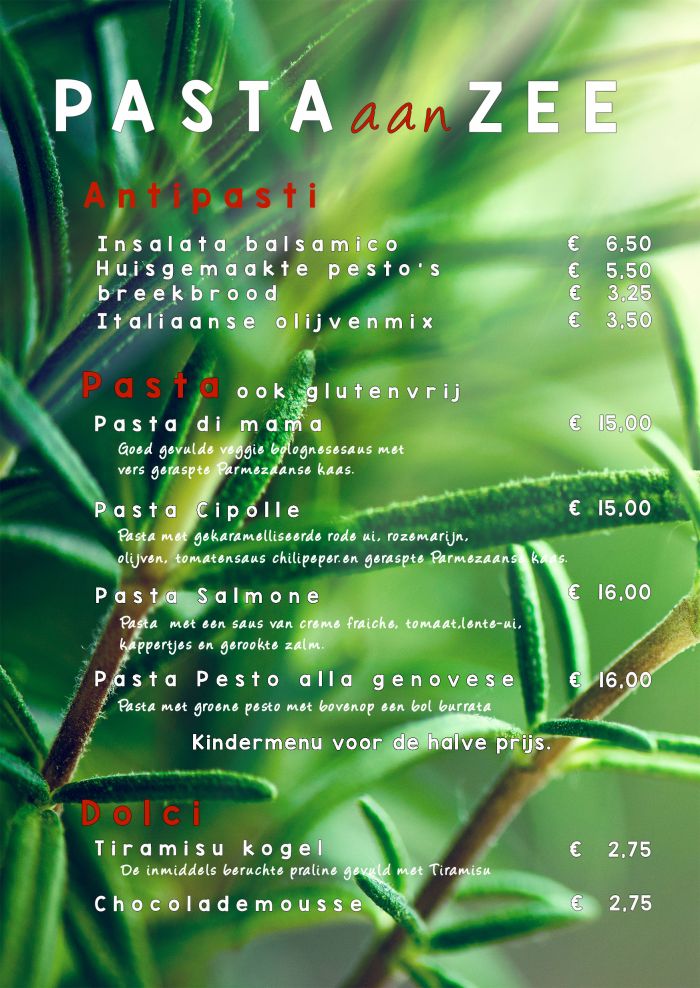 Tijdens het seizoen rijdt onze pasta foodtruck in elke windrichting over het eiland. Kom je ons ontmoeten? We staan op een camping, bij de jachthaven, een hotel of braderie. Daar hoef je alleen maar je neus te volgen; de heerlijke geuren wijzen je de weg. Pasta aan Zee bereidt ter plekke heerlijke gerechten volgens de vaste menukaart. Iets bestellen en meenemen kan natuurlijk ook! Ontdek de pure smaak van Italië en onze Terschellinger gastvrijheid.